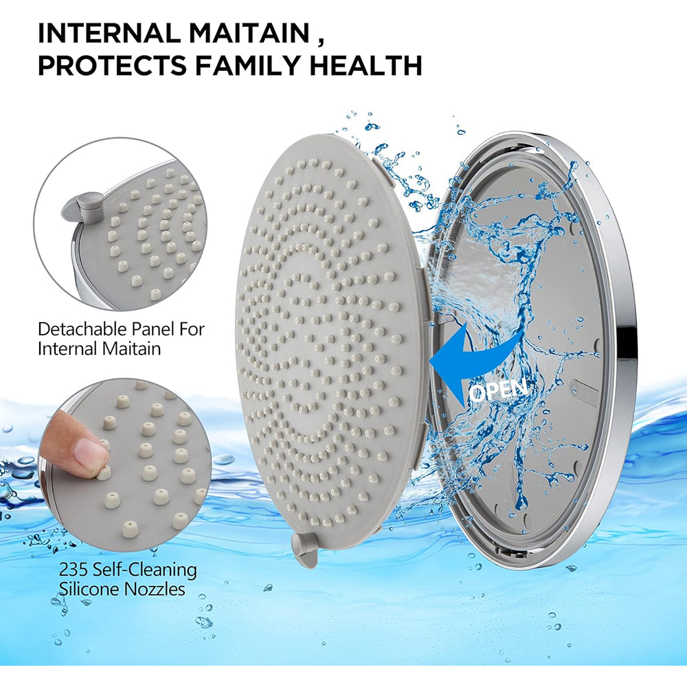 Elevate your daily shower experience with the Aquieen 9-Inch Self-Clean Overhead Shower, thoughtfully designed with a detachable faceplate for hassle-free cleaning and long-term maintenance. Featuring a sleek round silhouette and brilliant chrome finish, this shower head adds a contemporary flair to any bathroom. Crafted from durable ABS, it ensures high performance, even water distribution, and resistance to limescale buildup. Whether installed on the wall or ceiling, its self-cleaning mechanism and minimalist design make it a practical yet stylish choice for homes, hotels, and spas seeking convenience and hygiene.