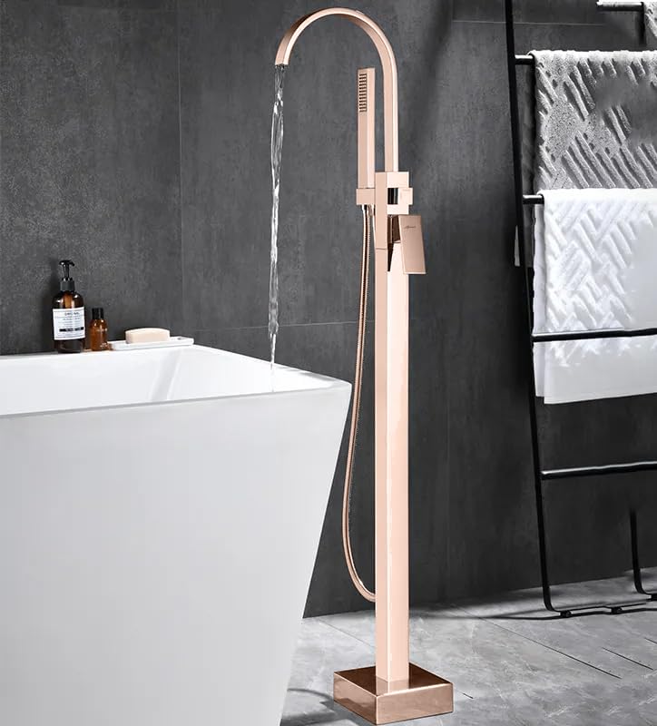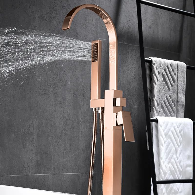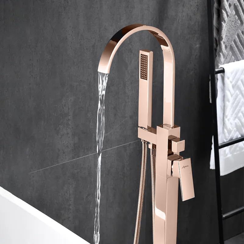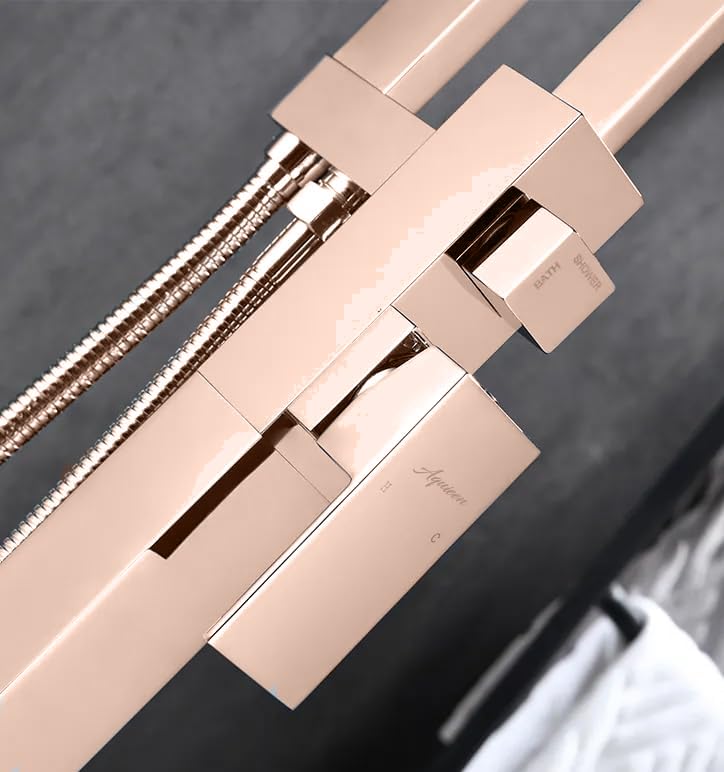 Upgrade your bathing space with the Aquieen Kubix Series Freestanding Floor-Mounted Bath Tub Filler, a premium brass bathtub faucet designed to blend luxury, durability, and modern aesthetics. Crafted from pure brass, this high-end tub filler ensures exceptional longevity, resistance to corrosion, and an elegant finish. The stunning electro-coated rose gold finish adds a touch of sophistication, making it a perfect match for contemporary and designer bathrooms.