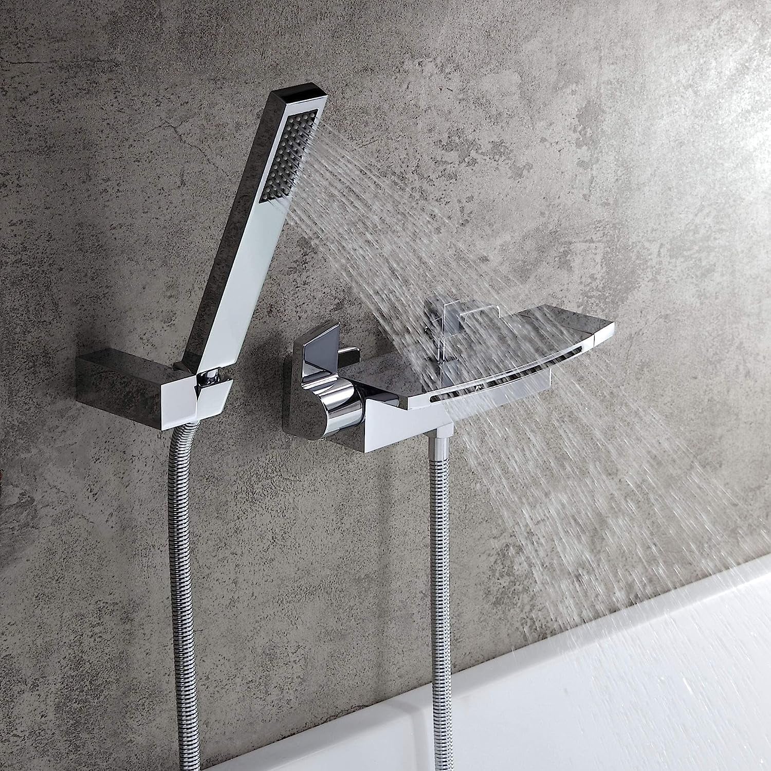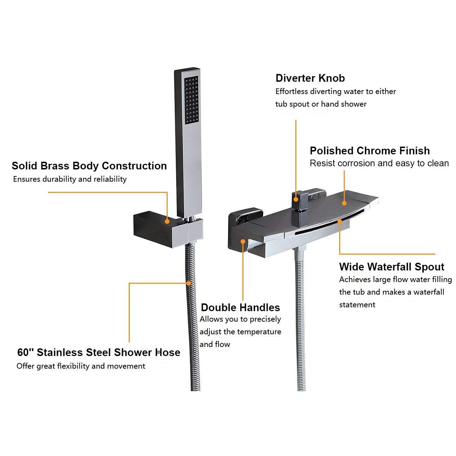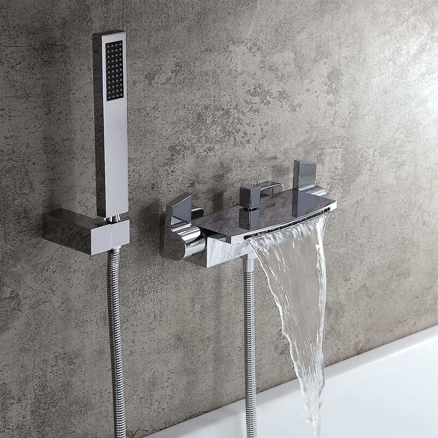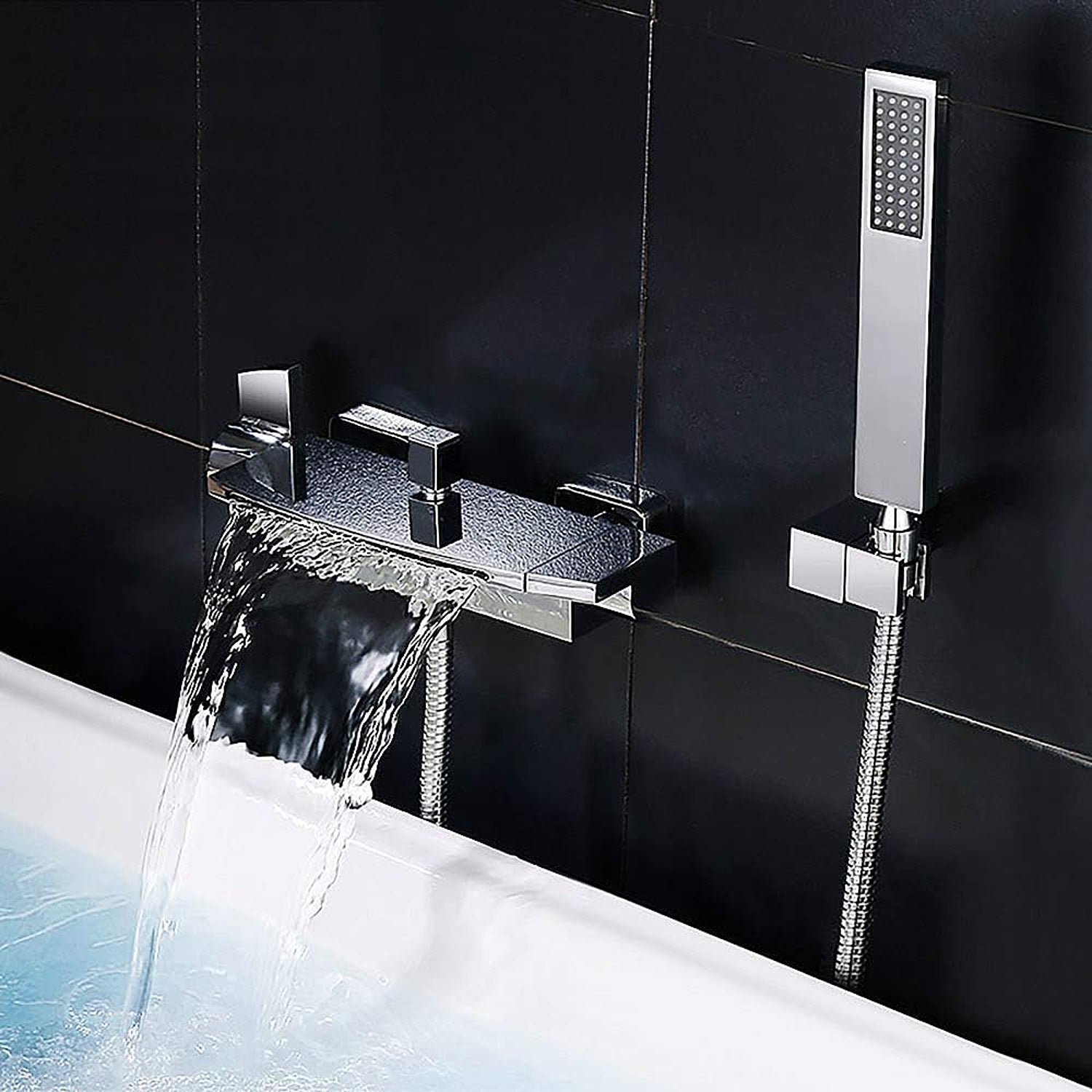Bathtub Faucet - Wall-Mounted | Made of Brass | Electro Coated | Chrome Finish | Hot & Cold Water Control - Waterfall Style