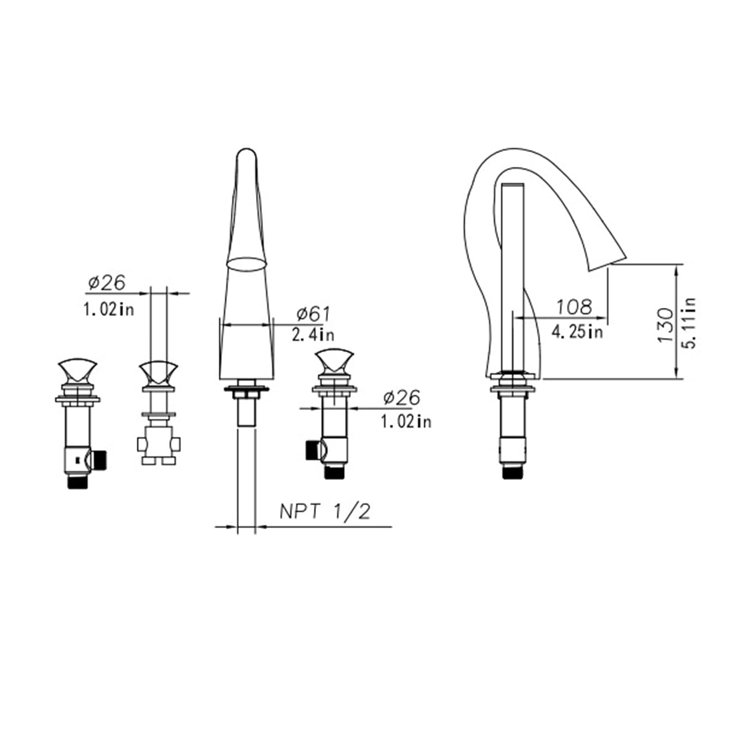- 5-HOLE DECK-MOUNTED INSTALLATION ➜ Designed for secure and sophisticated 5-hole tub installation, complementing modern bathroom aesthetics.