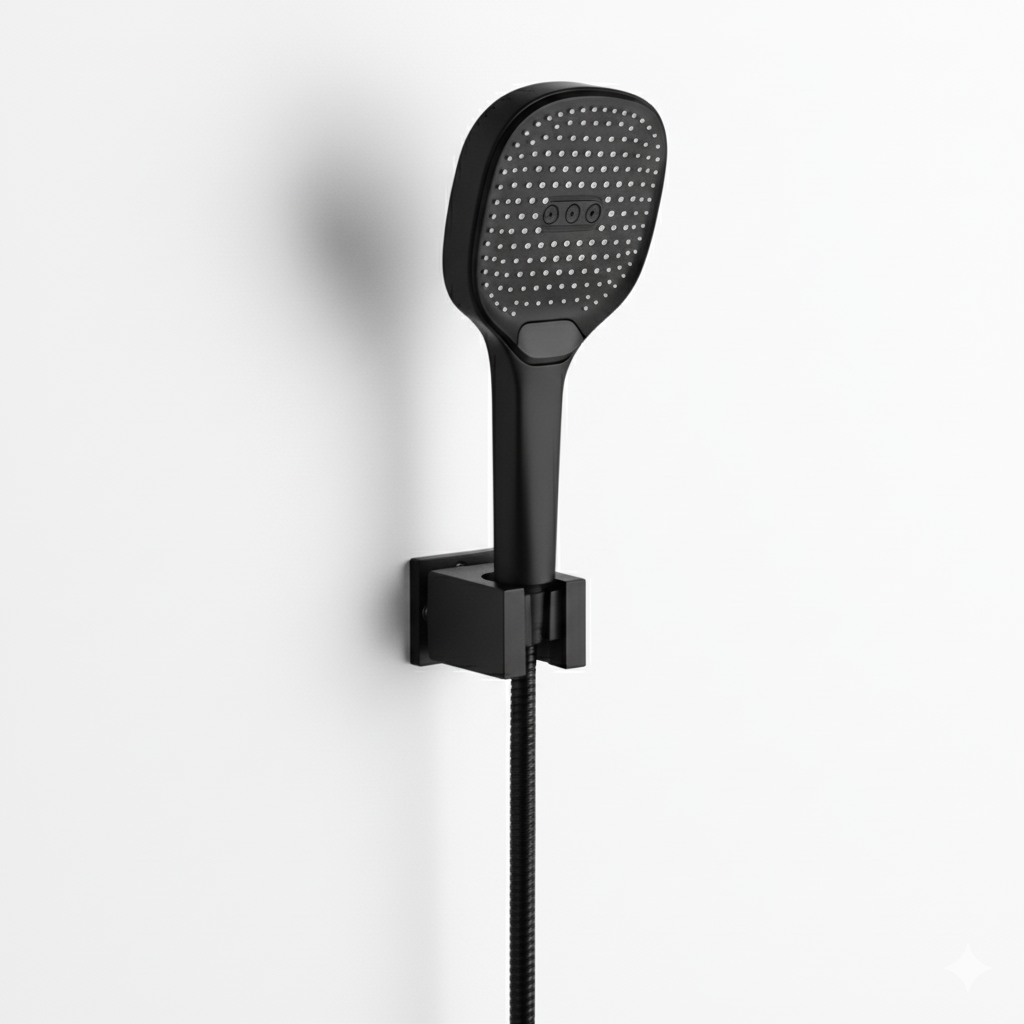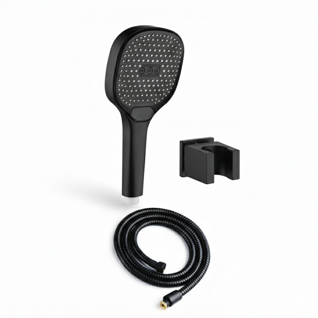 Equipped with silicone anti-clog nozzles, both showerheads offer hassle-free maintenance, preventing limescale buildup and ensuring consistent water flow. The included 1.5-meter stainless steel flexible hose allows for effortless movement, while the secure wall-mounted hook provides easy storage.