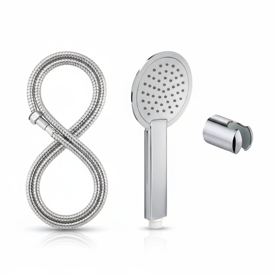 - COMPLETE HAND SHOWER KIT ➜ Includes a single-mode ABS hand shower, 1.5-meter flexible shower hose, and a wall-mounted hook—ready for quick installation in any bathroom.