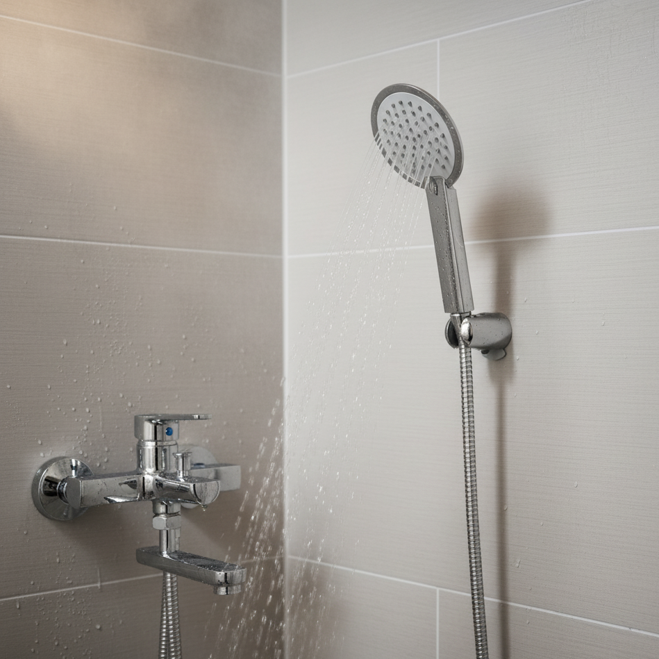The single water mode delivers a strong and focused spray that is perfect for quick showers, rinsing, and daily cleaning. The included 1.5-meter tube gives enough reach for ease of use, and the wall hook keeps your shower neatly mounted when not in use.