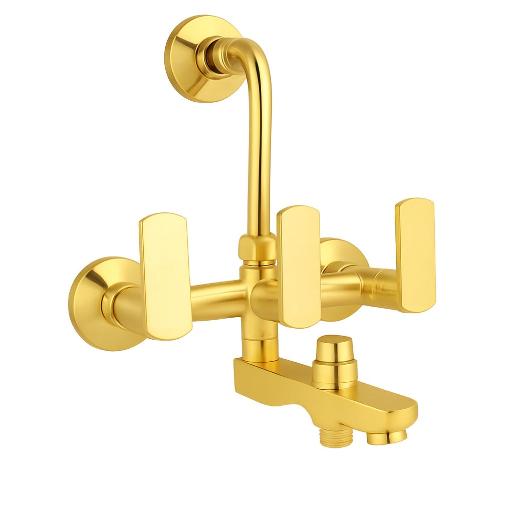 Upgrade your bathroom with the elegant and functional Aquieen 3-in-1 Wall Mixer with Leg Bend, Connecting Legs & Wall Flange from the premium Zura Series. Featuring a striking Gold PVD coating, this wall-mounted mixer is made from durable solid brass for superior corrosion resistance and longevity. Its 3-in-1 design allows seamless control over multiple water outlets, making it ideal for hand showers, overhead showers, and other water points. Equipped with leg bends, connecting legs, and a wall flange, this mixer ensures hassle-free installation and a clean, polished look for modern bathrooms and luxury spaces.