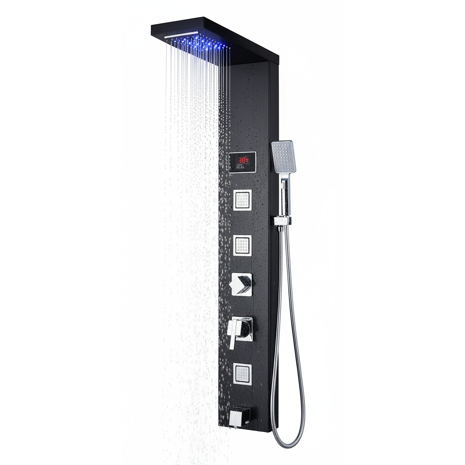 This versatile shower panel offers five unique modes, including Rainfall, Waterfall, Body Jets, Hand Shower, and Tub Spout, each designed to provide a different water flow experience. Whether you're looking for a relaxing rain shower, an invigorating waterfall stream, or powerful body jets to massage your muscles, this panel has it all.