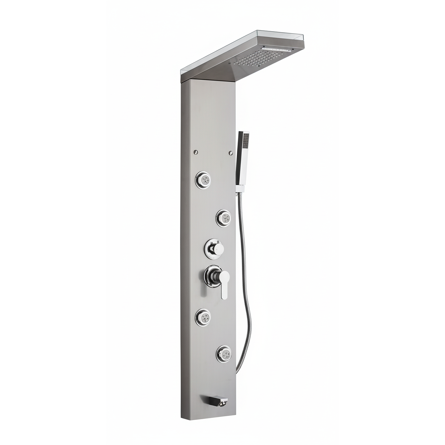Elevate your daily shower routine with the Aquieen Silver Shower Panel, designed to bring luxury and performance into your bathroom. Crafted with a durable SS304 stainless steel body, this elegant silver-finished shower tower features a brass shower mixer and a dual-mode top shower offering both soothing waterfall and immersive rainfall options.