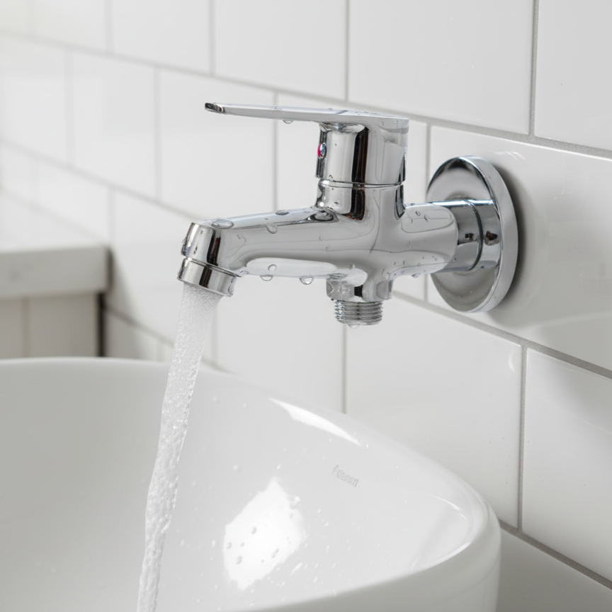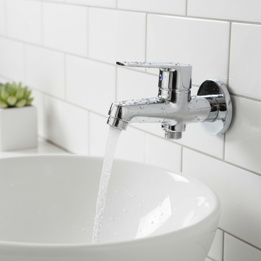 The Aquieen 2-Way Bib Cock with Wall Flange is designed to provide efficient water distribution for various household and commercial needs. Whether for a bathroom, kitchen, washing area, garden, or utility space, this wall-mounted dual-outlet tap ensures convenience, durability, and leak-free performance.